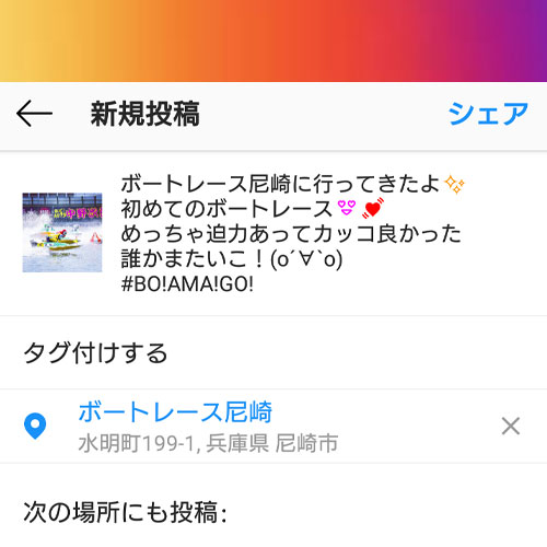 Instagramでシェア!ハッシュタグ「#ボートレース尼崎」「#尼崎ヘGO」